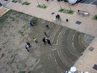 Por la tarde, con la cinta métrica y azada en mano, de nuevo solo madres (esos padres, que se animen para el próximo día), hemos comenzado a trabajar en algunos bancales explicando el por qué de lo que ibamos haciendo, y programando la hoja de ruta a seguir en los posteriores días.